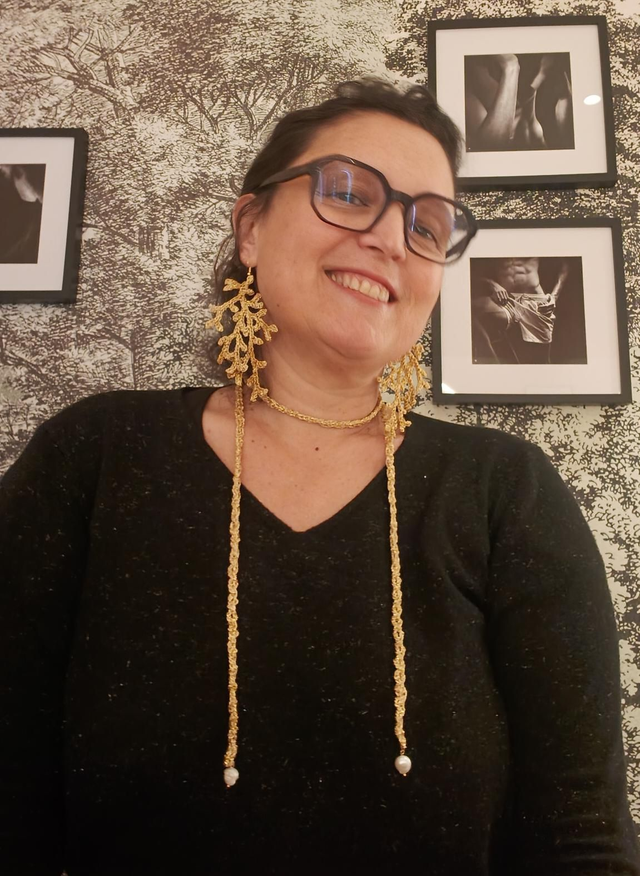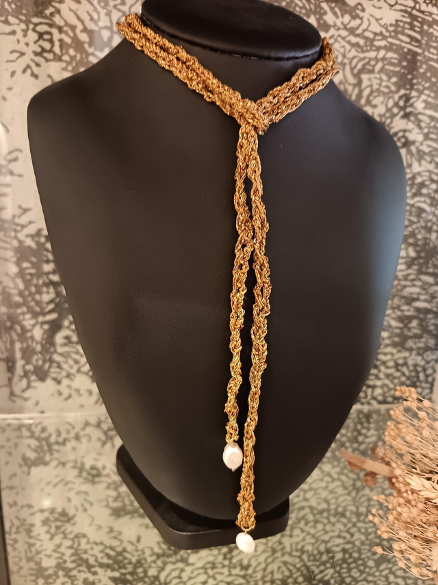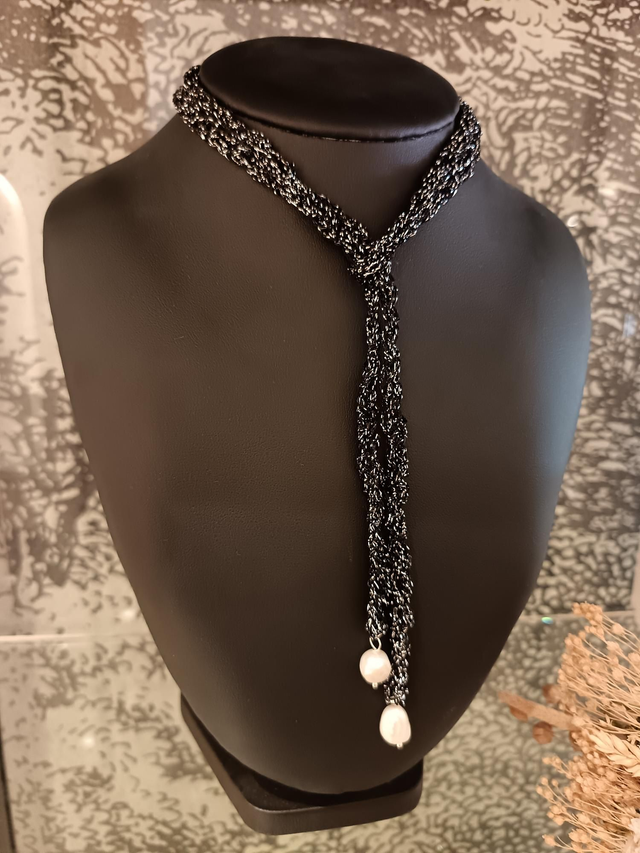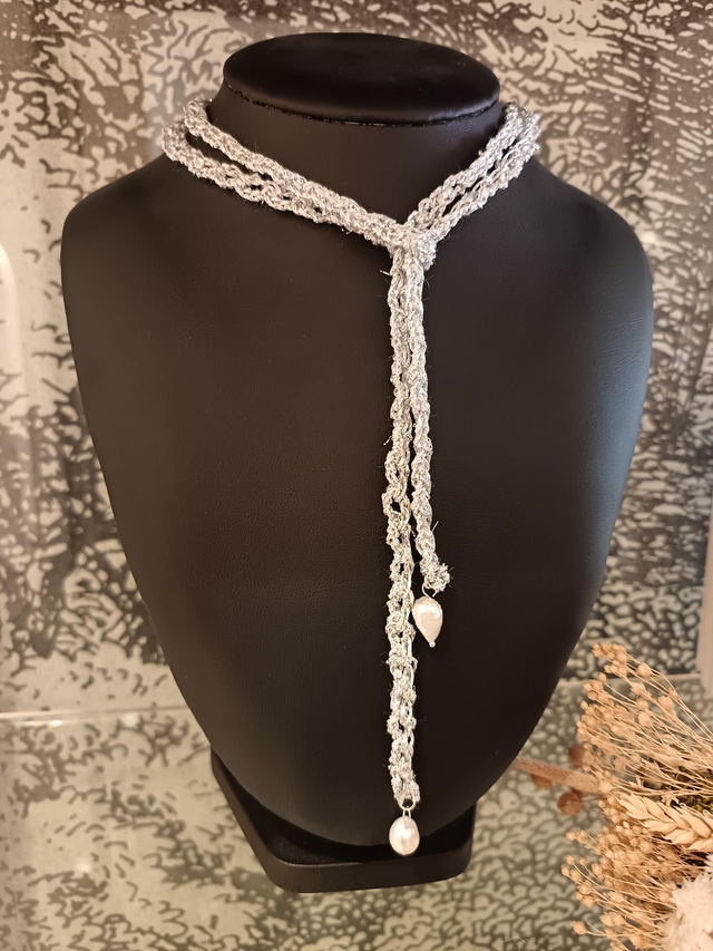 Collier en coton glitter avec perles d'eau douce.