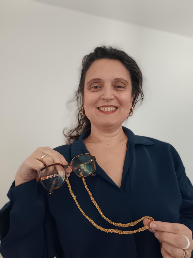 Cordon à lunettes réalisé à la main au crochet en coton glitter doré